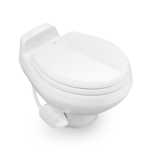 This water efficient gravity toilet is a firm favorite with marine applications. It is easy to install, easy to clean and includes a 1 year warranty. The Dometic 511+PS is a simple, effective and water efficient gravity toilet that is a firm favorite for marine applications. The foot-pedal toilet provides the ultimate water-conserving flush consuming as little as 0.10 gal. (0.39 l) per flush and has an integrated vacuum breaker to protect the water supply. Designed to be installed directly above a holding tank it creates an airtight seal to keep odors out and, with Dometic’s patented flush mechanism, it requires no electrical power either! Intentionally robust with an elongated, solid seat this toilet provides comfort and support. While the attractive and lasting finish of vitreous china keeps its brilliant high gloss shine for an elegant look. Easy to clean – it has a self-cleaning ball valve – and easy to install. Available in sparkling white or bone color.