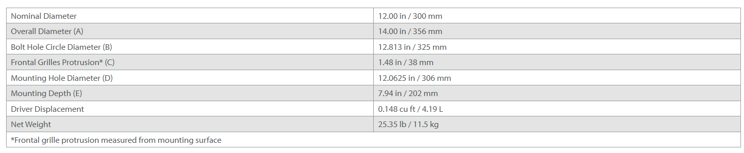 | One-Way Linear Excursion (Xmax)* | 0.73 in / 18.5 mm |