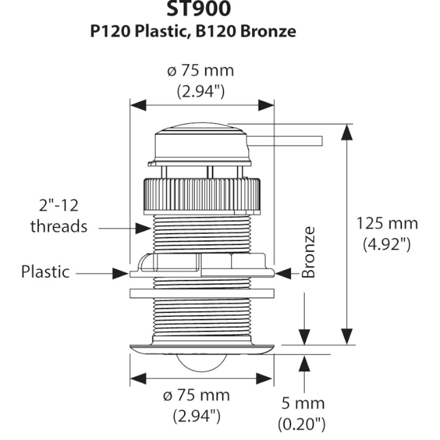 Product Description Raymarine ST900 Speed/temp Low Profile Bronze Thru-hull With 13.7m Cable - E70686